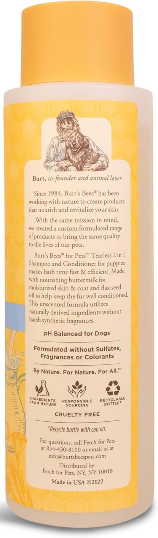 Burt’S Bees for Pets Tear Free Puppy Shampoo & Conditioner with Buttermilk, 2 in 1 Gentle Dog Shampoo for Puppies, Cleans and Conditions Sensitive Skin, 16 Fl Oz