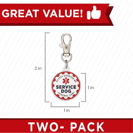 2 Pack Service Dog Tag Double Sided: Metal Pet ID Tags for Service Animals, Emotional Support & Therapy, Navy Lettering & Red Enamel Trim (1 Inch (Small Dogs))